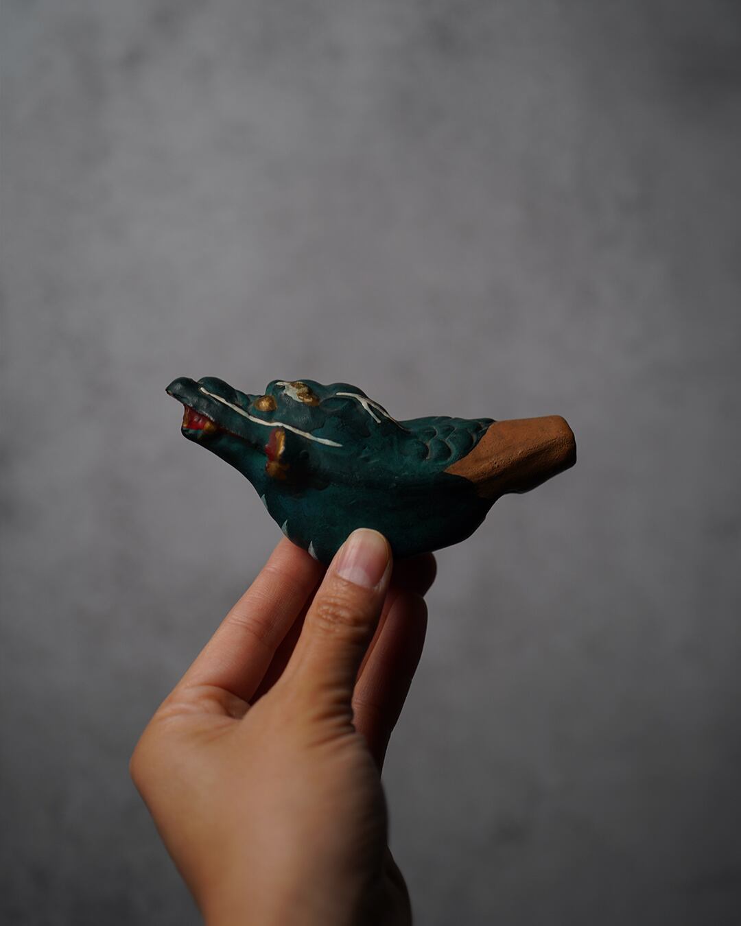 鱗や目、鬣の表現には簡潔でありながら迷いのない手仕事が感じられ、土笛としての機能を備えつつ、造形としても完成度の高い一品です。