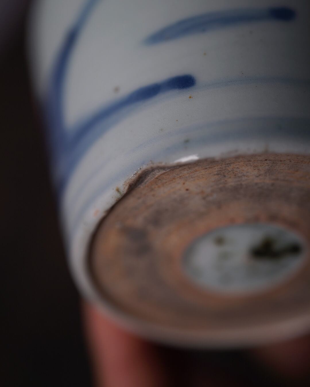 呉須のにじみや濃淡には手描きならではの揺らぎがあり、白磁の地にやわらかな奥行きを添えています。伸びやかな筆致が、江戸後期の伊万里らしい素朴な美しさを伝えています。