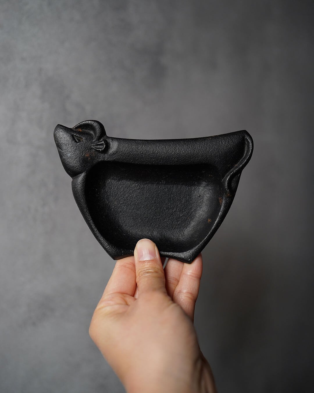 鉄鋳物による、牛をかたどった小ぶりなトレイです。