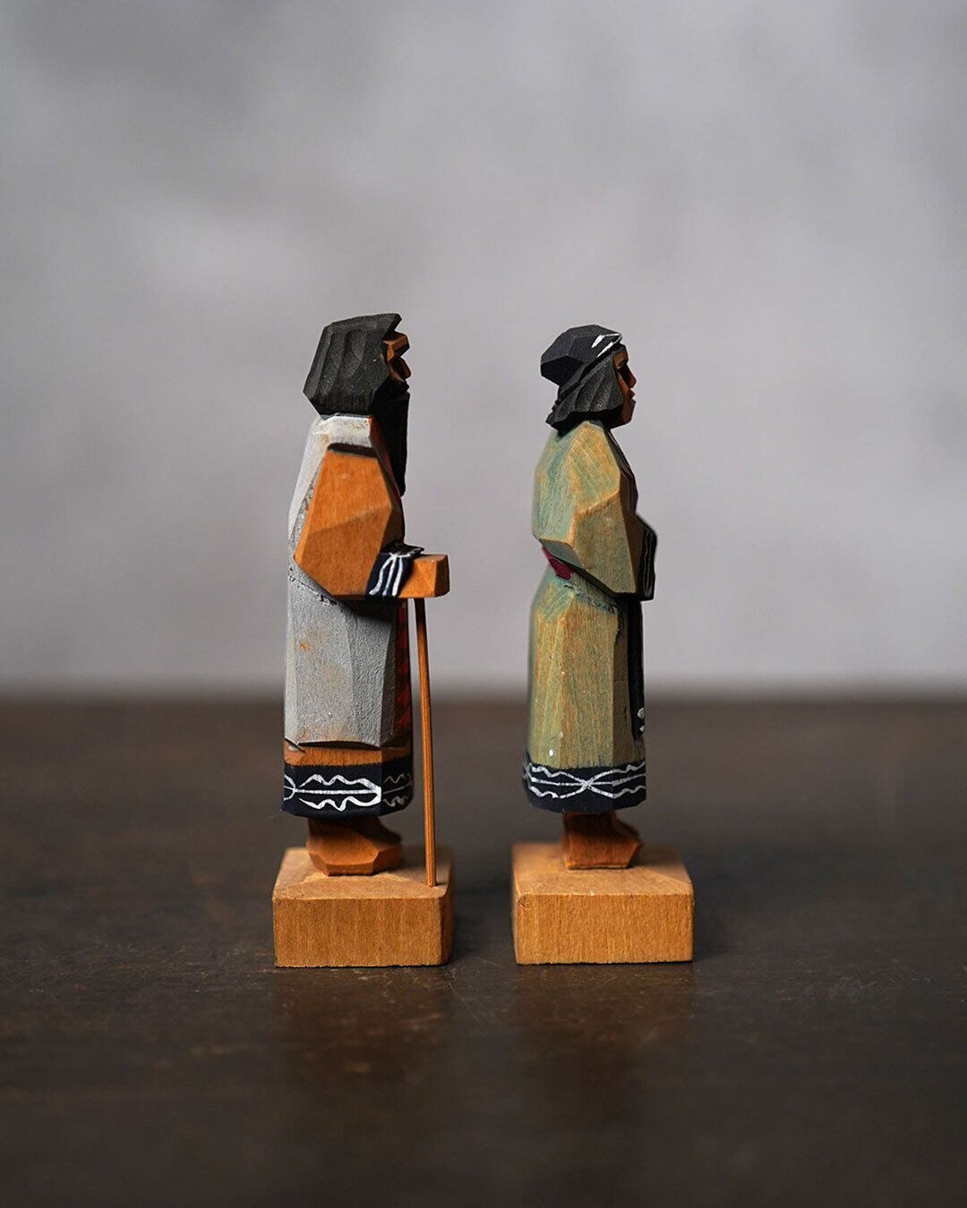 直線と面を基調とした造形は端正で、表情には誇りとやさしさがほどよく宿ります。衣装に施された文様や彩色は細やかで、色合いが木肌と美しく調和し、全体に品のある深みを与えています。