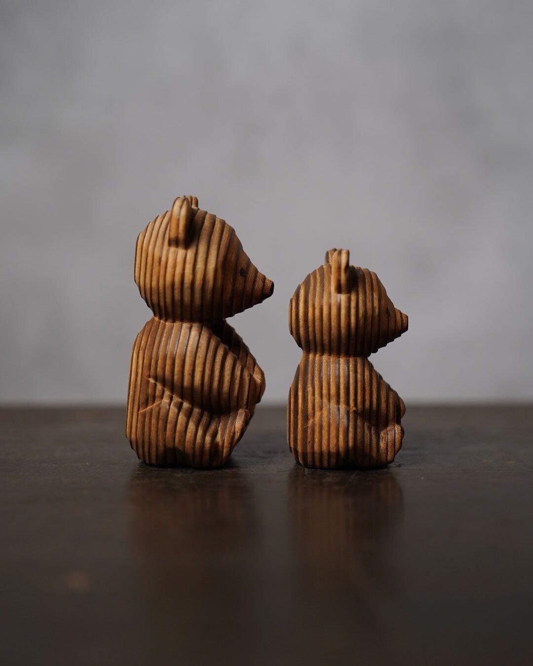 美しい木目を生かして彫り上げられた、熊ボッコの一対です。