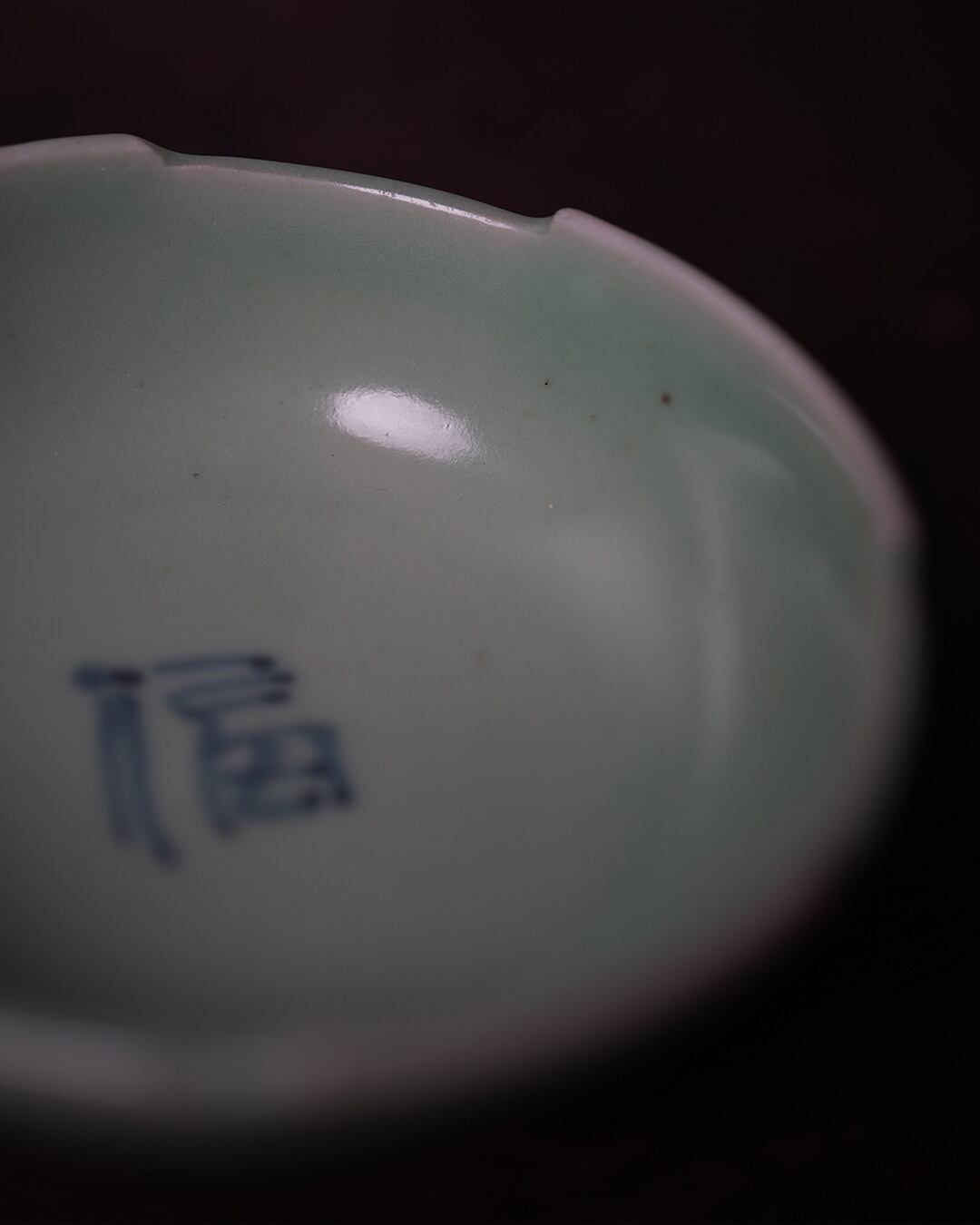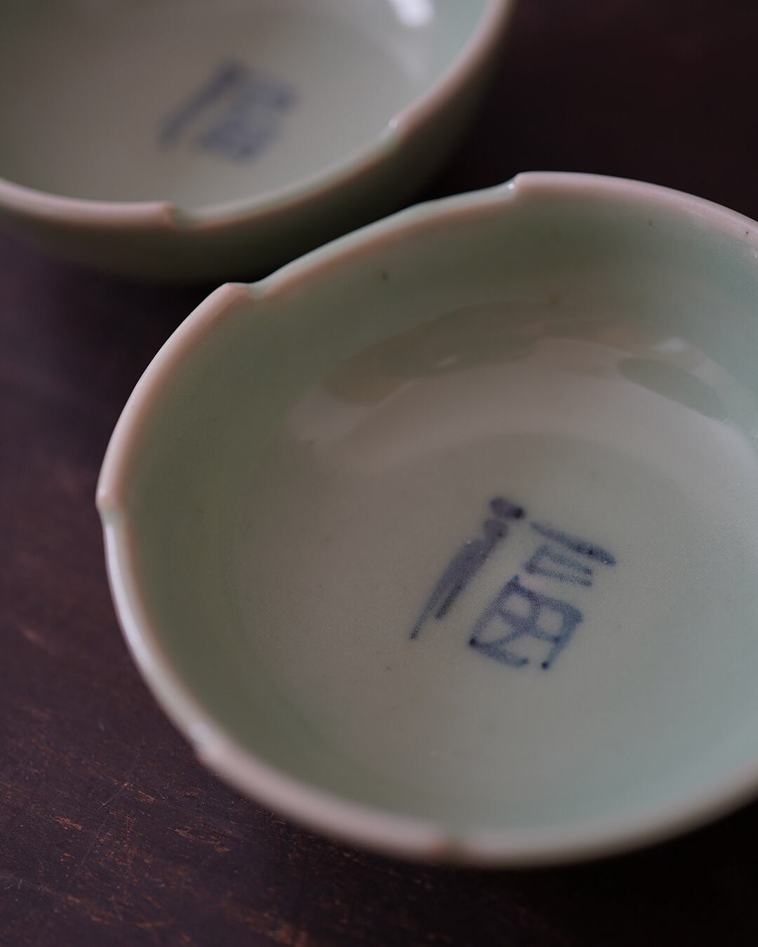 やわらかな青磁釉に包まれた小鉢です。見込み中央には、呉須で「福」の文字が描かれています。素朴で伸びやかな筆致が、余白の中に静かな存在感を宿します。