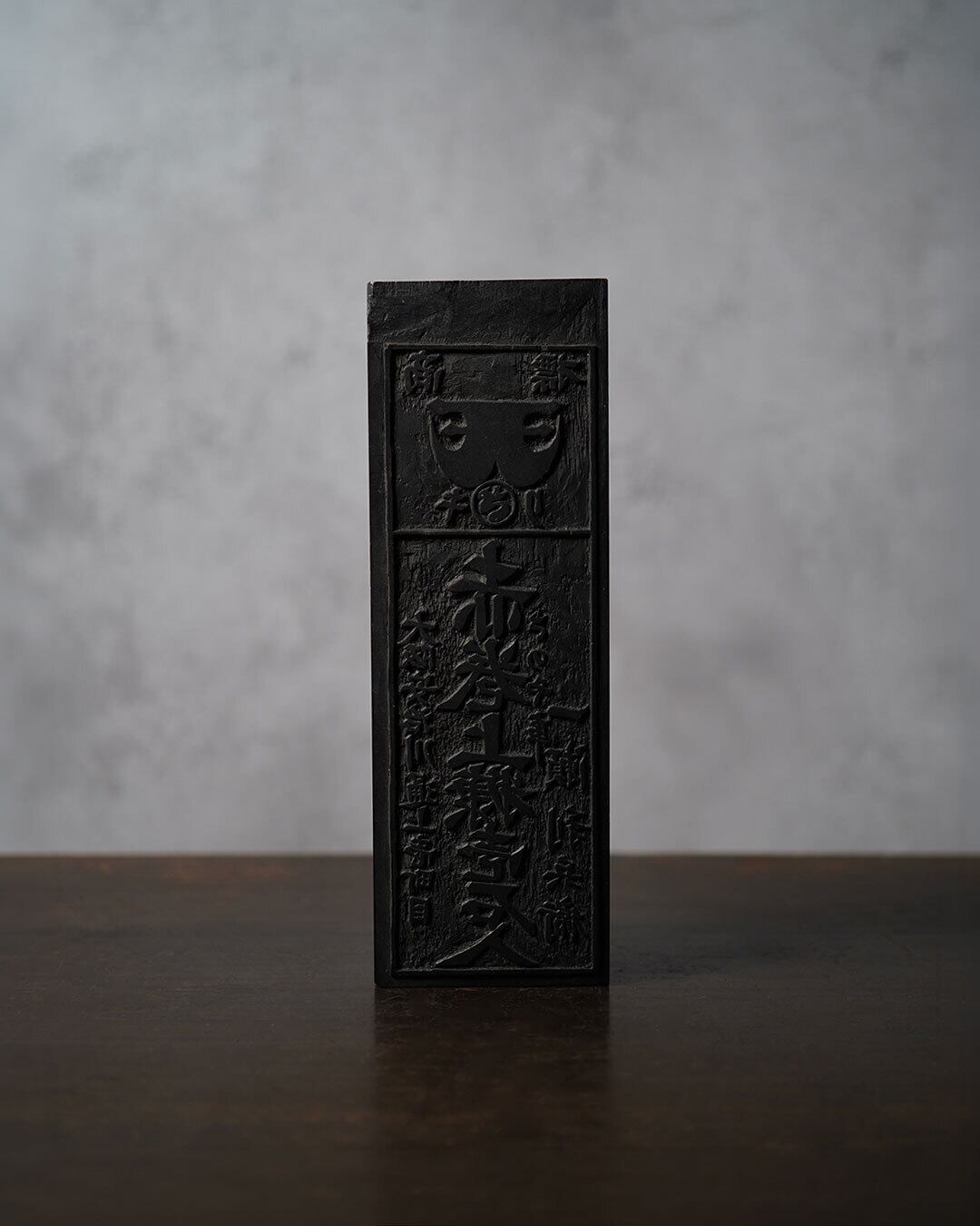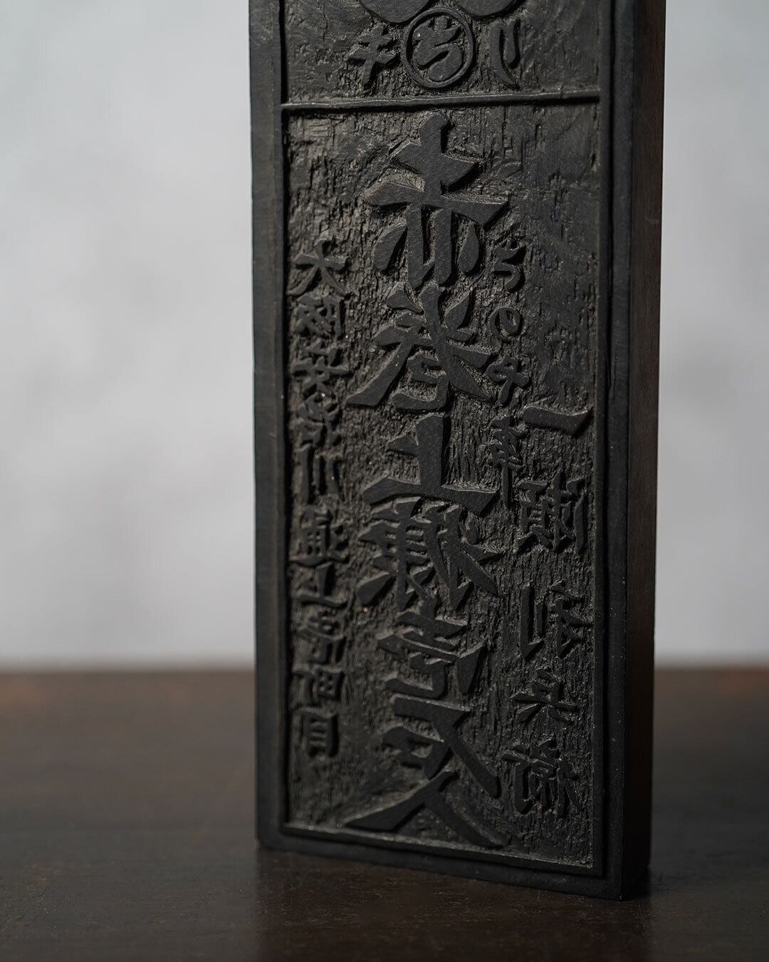 彫り跡には刃物の運びがそのまま残り、深さの揺らぎや線のゆらぎに、手仕事ならではの力強さが感じられます。黒く染み込んだ墨や摩耗の跡には、実際に使われてきた道具としての時間が静かに刻まれています。