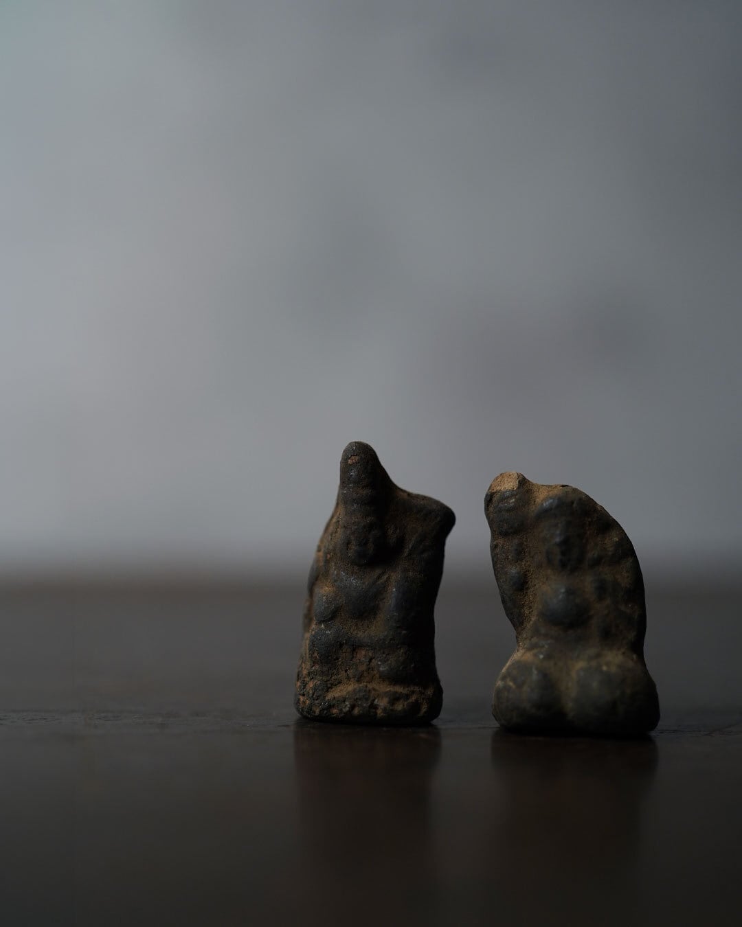 手のひらに収まるほどの小さな像ながら、暮らしの中に静かな祈りと福を迎え入れる一対です。